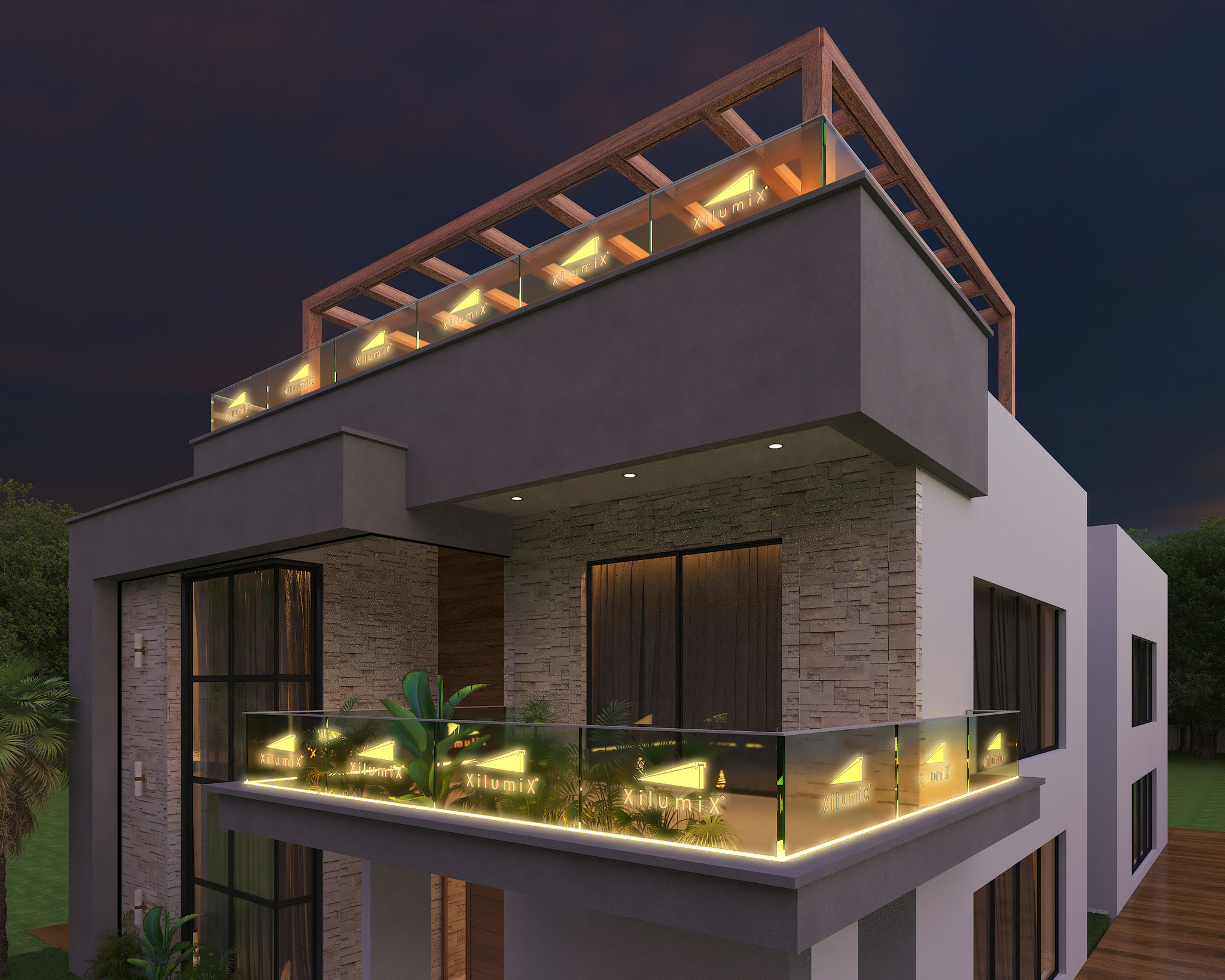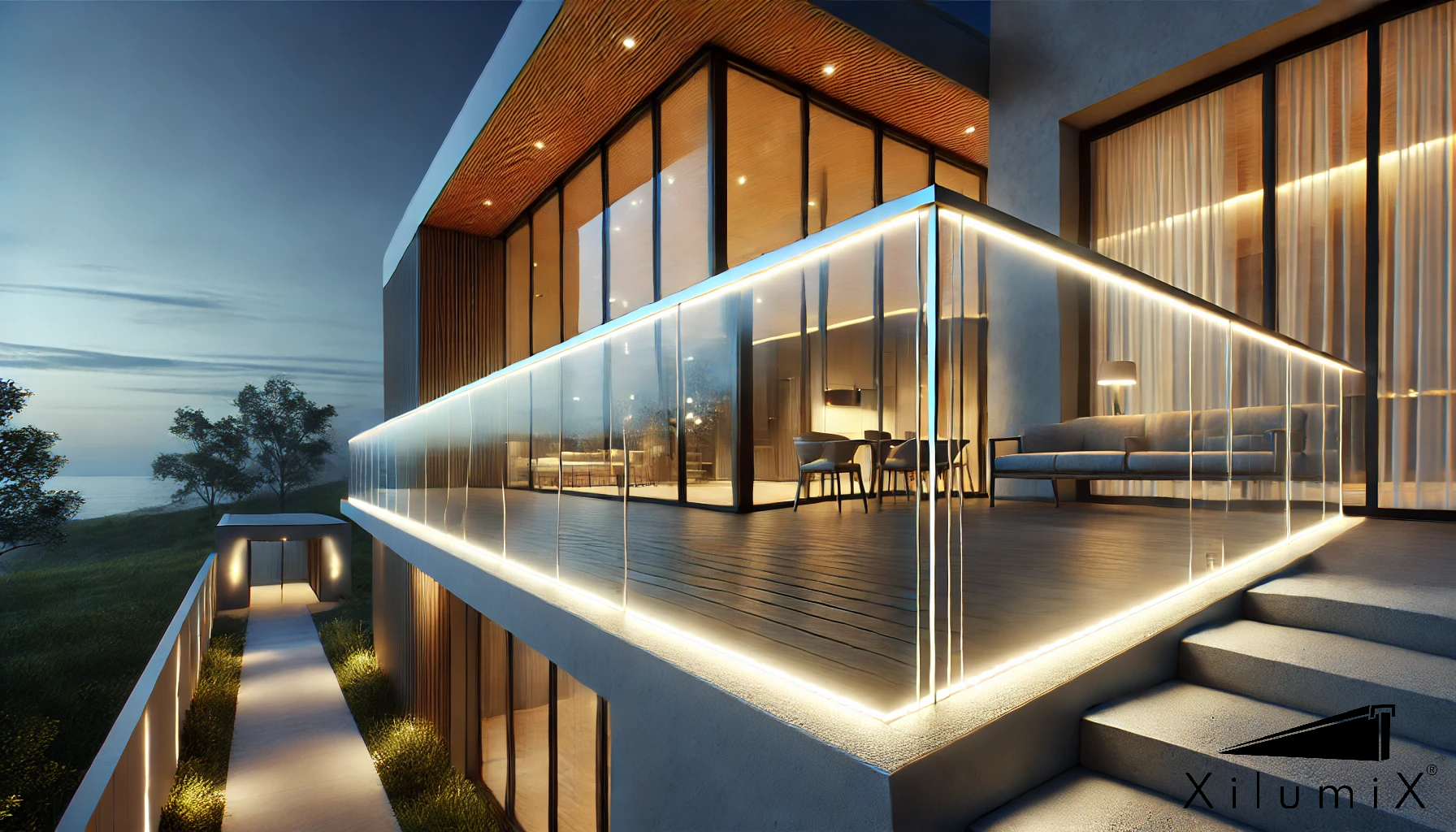 1. Schlankes Design: Mit einer Höhe von nur 10 mm fügt sich das XilumiX® LED-Lichtsystem nahtlos in Glasgeländer ein und bewahrt die ästhetische Erscheinung seiner Architektur.